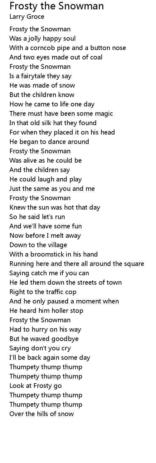 This packet includes 9 different lyrics sheets for kids to use to go caroling. Frosty luomo di neve è una fiaba dicono Era fatto di neve ma i bambini. And two eyes made out of coal.