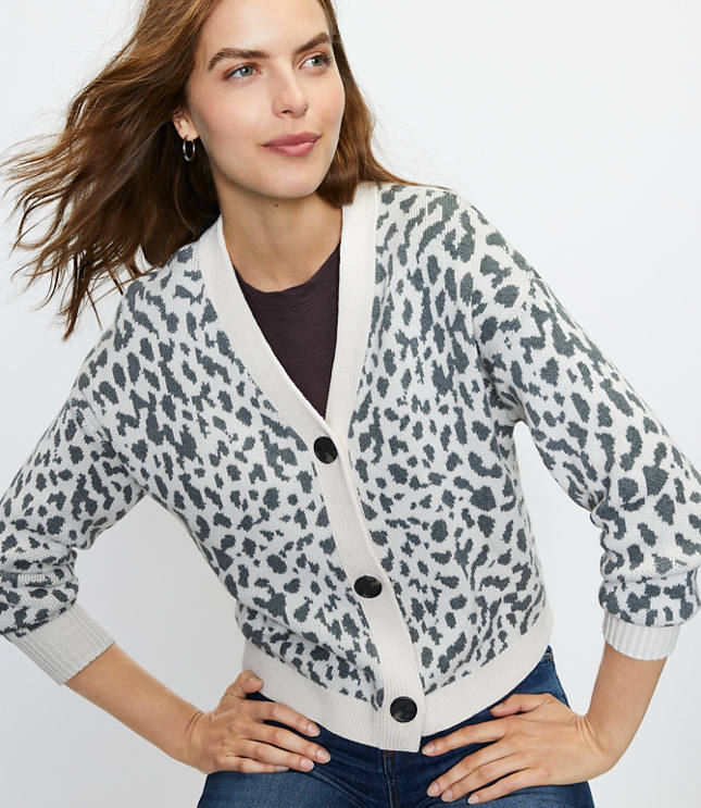 Grey Cropped Leopard Cardigan Sweater 8 17 Size L Womens Sweaters Size Chart Buy Now Like and save for later. Earn 5 cash back. Gray cheetah Leopard sparkle pattern button front cardigan sweater sz M L.